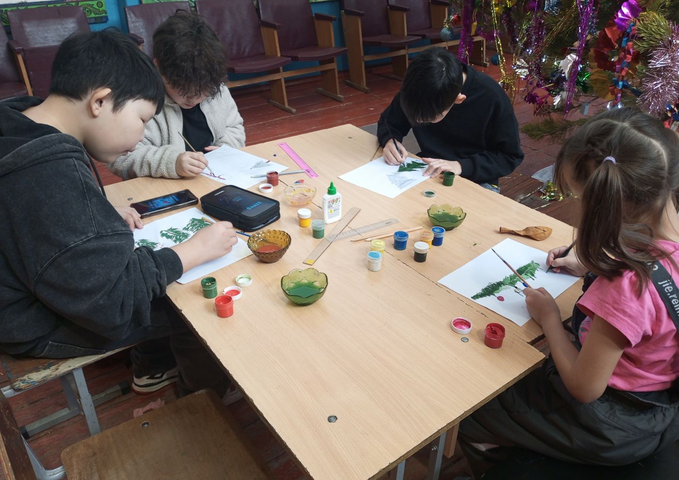 Подготовка к новогодним праздникам - самая любимая пора для детей и взрослых. Вот и в наших учреждениях культуры открываются новогодние мастерские Деда Мороза, где юные мастера вырезали и изготовляли объемные снежинки для оформления зала, изготавливали открытки с главным новогодним символом-ёлочкой, ёлочные украшения - лошадка символ наступающего года и много ещё разных и красивых поделок!