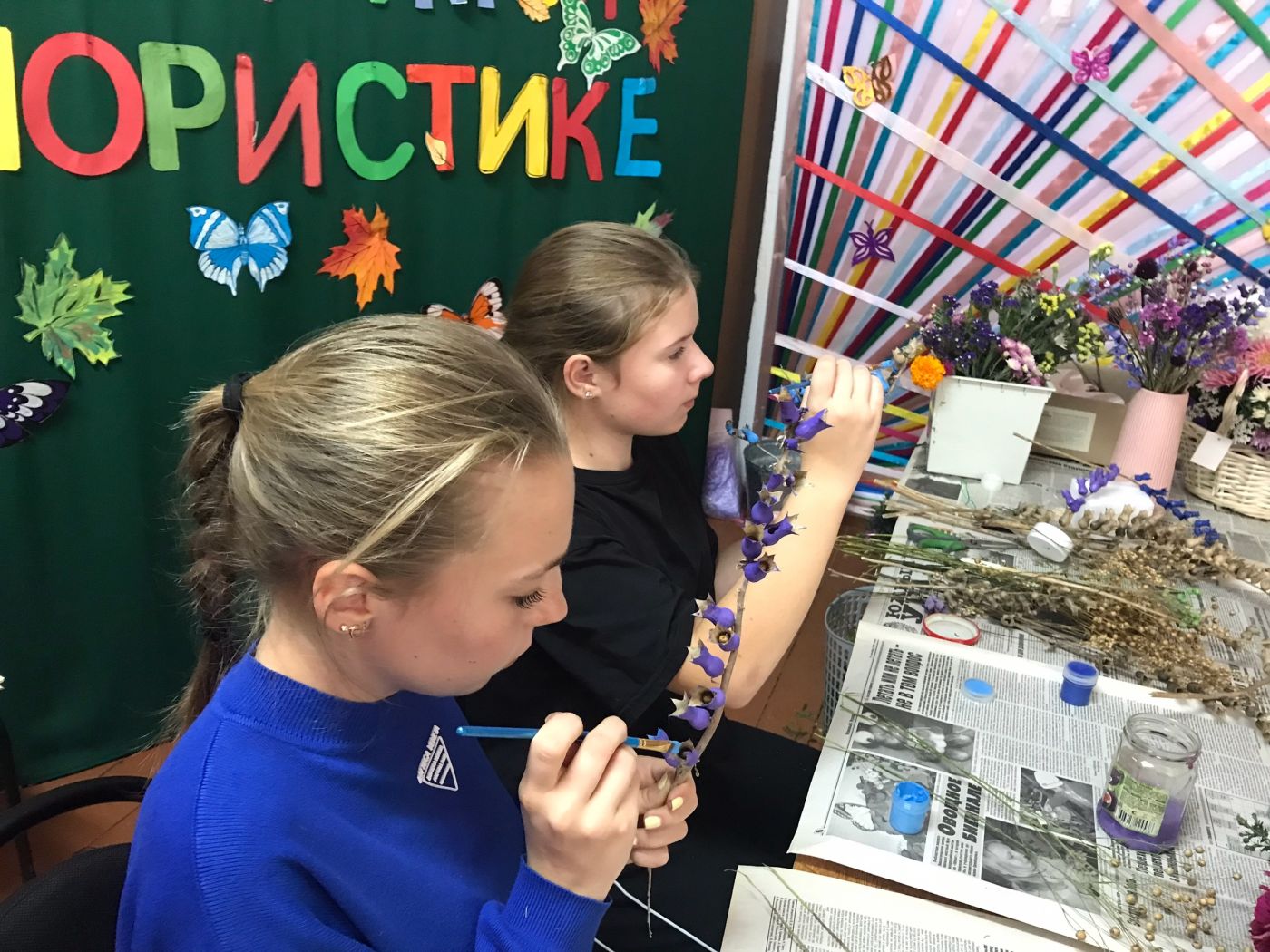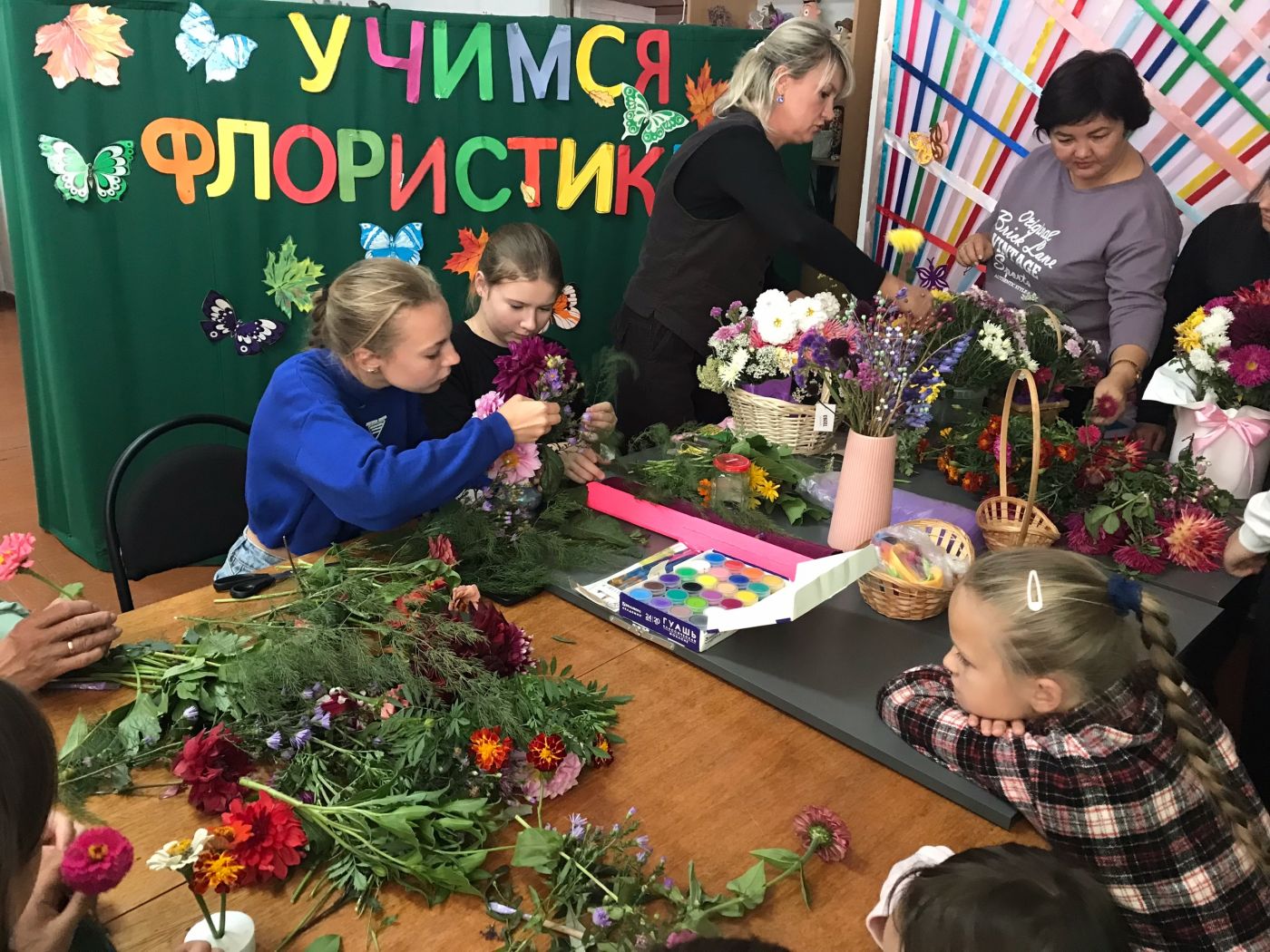Сентябрь! Буйство осенних красок! Цветы дарят нам свою красоту и торопятся показать себя, как модницы. В Майском Доме культуры собрались любители цветов, чтобы узнать секреты флористов о составлении букета. Мастер класс давала Журавлева Елена Викторовна, окончившая курсы ландшафтного дизайна и знакомая с флористикой не понаслышке. Она рассказала о том, чему учит флористика, какие букеты и из каких цветов и других растений можно создавать, какие композиции по цветовой гамме уместны на разные торжества. Особое внимание уделила работе с сухоцветами. Пришедшие на мастер класс поблагодарили Елену за новые знания о флористике и ушли со своими букетами, которые будут напоминать о прошедшем лете и долго радовать своими красками.