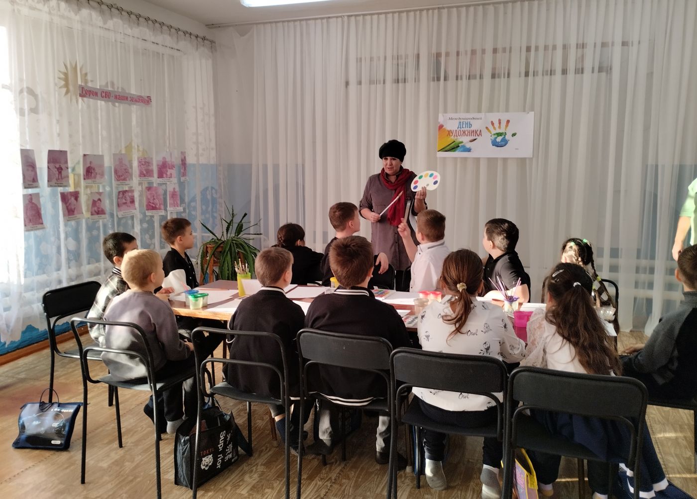 На кануне Дня художника, в Юбилейновском Доме культуры, совместно с библиотекой и школой прошла познавательная программа «Мы - художники». Художник - Рисовайкина рассказала ребятам для чего нужна палитра, какие бывают кисти и краски. Ребята с удовольствием отгадывали загадки, рассуждали какие бывают красивые натюрморты, пейзажи и портреты. Рисовайкина предложила ребятам дорисовать картины. Все, без исключения проявили фантазию и художественный талант, получились очень яркие и оригинальные рисунки.
