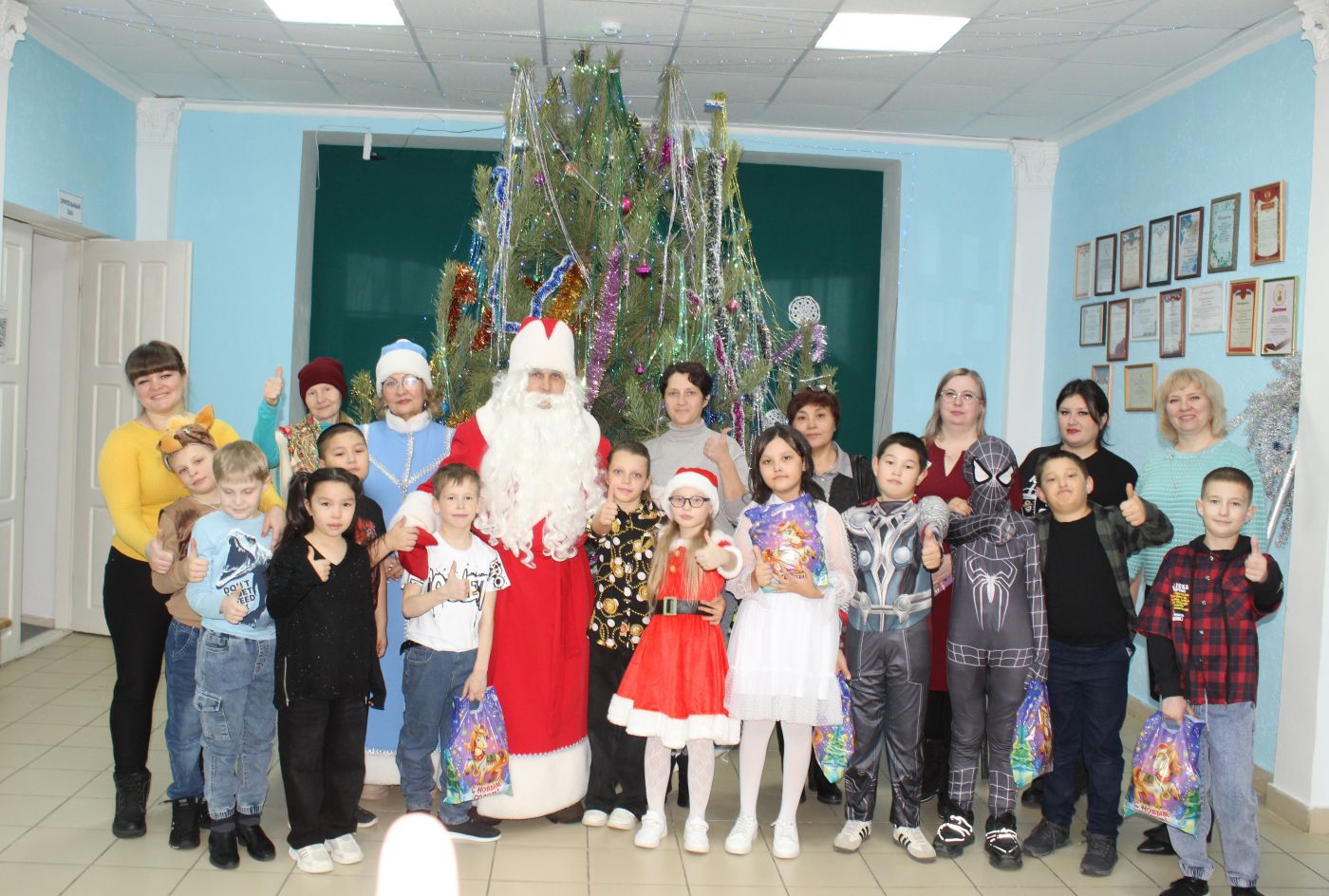 В Комсомольском Доме культуры провели для младших школьников новогоднее театрализованное представление  «Приключения у Новогодней ёлки». К детям на праздник пришли сказочные герои Дед Мороз, Снегурочка, Баба – Яга и избушка на курьих ножках. Дети стали участниками сказочного спектакля. Вместе со сказочными героями они искали новогодние подарки. Ребята очень весело провели время, участвовали в конкурсах, играх, пели песни, рассказывали стихи, водили хороводы. Заключительной частью праздника было вручение подарков от Деда Мороза и фотосессия со всеми персонажами представления.