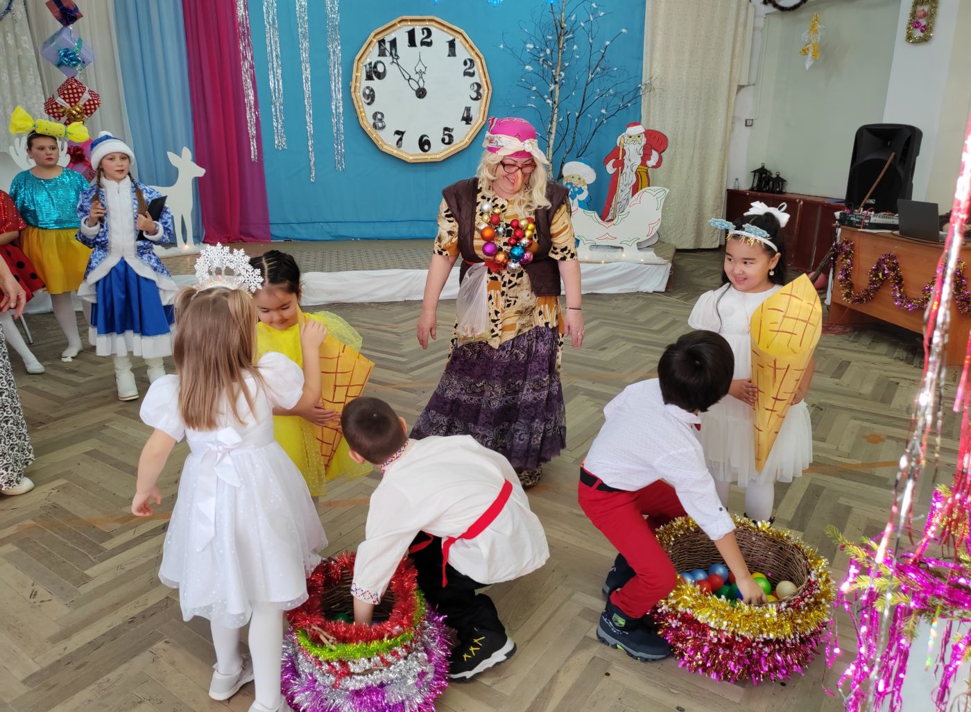 30 декабря в Елизаветинском Доме культуры для детей прошел новогодний утренник «В Новый год за сказками!». Под торжественную музыку началось основное представление. Из-за проказ перевоспитывающейся Бабы-Яги, раскидавшей волшебные бусы Деда Мороза по сказкам, праздник оказался под угрозой. Снегурочка вместе с детьми и сказочными персонажами: Снеговиком, Гномами и Конфетками отправились в сказочное путешествие, выполняя задания, чтобы собрать бусы и вернуть волшебство Новому году.В представление были вплетены музыкально-танцевальные игры в которых активно участвовали все дети. Под звуки волшебного перезвона в зал вошел Дед Мороз. Общее ликование, хоровод вокруг нарядной елки под песню «В лесу родилась елочка»и чтение стихов стали кульминацией праздника. В награду за помощь и дружбу каждый ребенок получил из рук Деда Мороза и Снегурочки долгожданный новогодний подарок.
