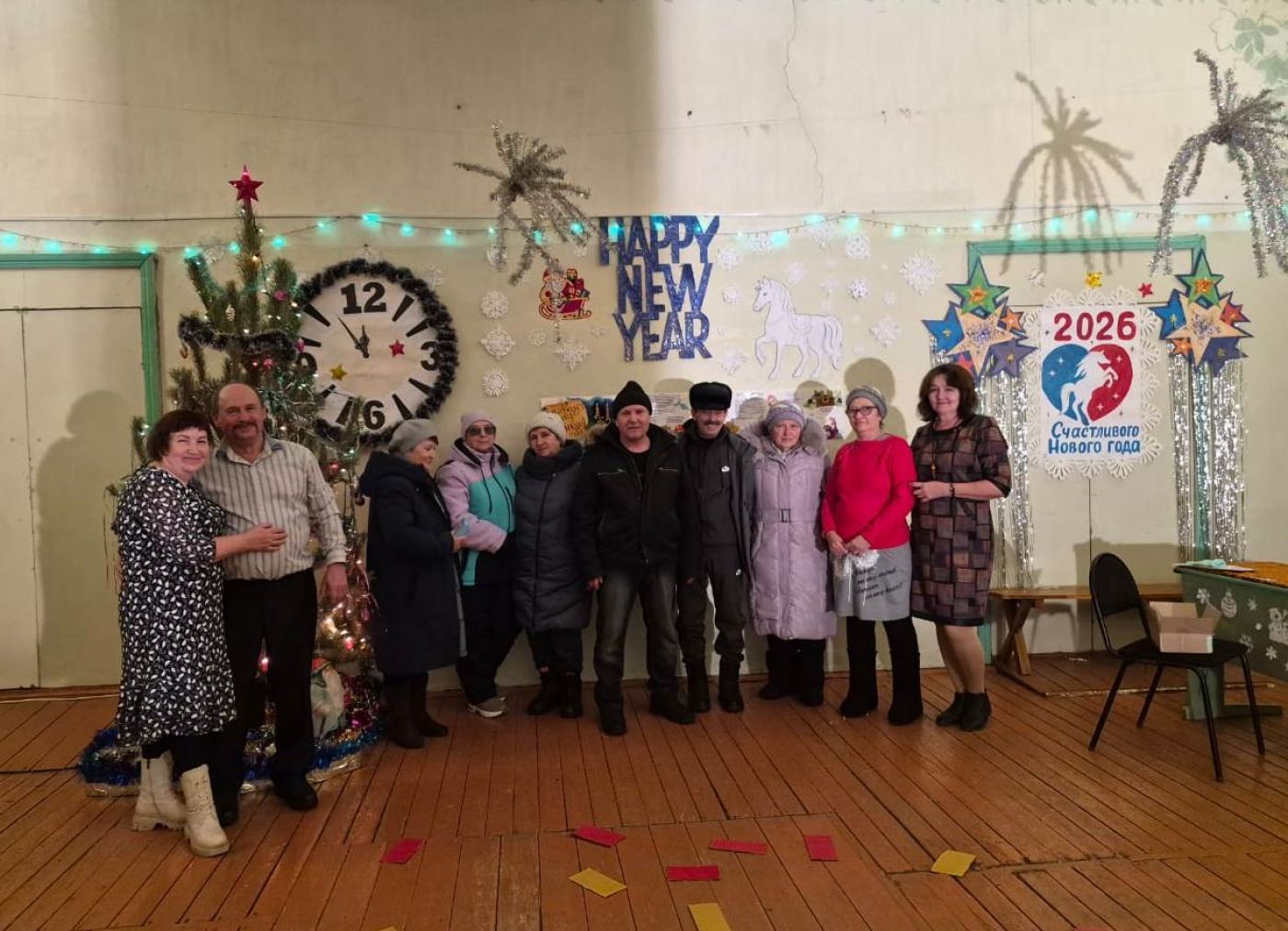31 декабря Речной клуб распахнул двери для всех желающих односельчан и гостей поселка встретить вместе наступающий 2026 год.  Все дружно участвовали в играх и конкурсах, отвечали на вопросы "Лошадиной викторины", выполняли задания из гирлянды, искали призы и  с удовольствием фотографировались на фоне ёлочки и красивой фотозоны.