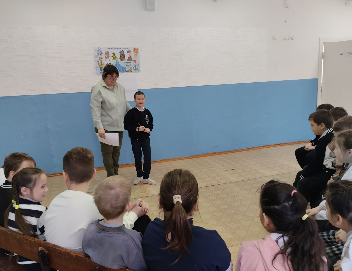 Игра проходила в несколько раундов, ребята отвечали на вопросы, узнавали героев сказок и давали им характеристики, находили сказочных героев друзей и лишние слова в заданиях, отгадывали противоположные названия недобрых поступков.